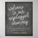 Planifier une cérémonie débranchée, mais ne pas savoir quel libellé utiliser pour laisser vos invités mariages savoir mettre leurs téléphones? Ce poster chic s'en occupe pour vous dans le style. Chalkboard style design caractéristiques "bienvenue à notre cérémonie débranchée" dans la typographie manuscrite de style script avec vos noms et message personnalisé en dessous. Montré avec "s'il vous plaît rangez vos téléphones et appareils photo jusqu'après la cérémonie."