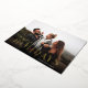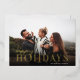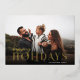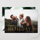 Ce carte photo de vacances de Noël au design simple présente une élégante typographie de papier peint "Happy Holidays". Une photo en dégradé foncé sur le fond permet au texte de se démarquer de votre photo. La taille et l'emplacement de la superposition peuvent être ajustés au besoin grâce à l'outil de personnalisation. Le dos contient un motif plaid peint en vert.