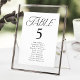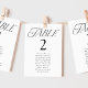 Carte simple et élégante des sièges de mariage avec "table" affichée dans un style moderne de typographie noire avec le numéro de table et les noms d'invités indiqués ci-dessous. Le dessin se répète à l'arrière. Pour commander le tableau des sièges du numéro de table, modifiez chaque carte avec le numéro de table et les noms des invités et ajoutez-la à votre panier.
