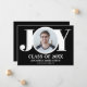 Cette carte de Faire-part moderne en noir et blanc présente une photo unique et le mot JOY dans la typographie stylisée. Facilement personnalisable avec votre photo et vos détails.