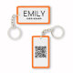 Design présenté dans le carnet de vacances de Zazzle! Une typographie noire chic et élégante sur arrière - plan blanc avec une fine bordure orange donne une touche classique mais moderne à ce modèle porte - clé d'affaires. Un excellent outil de marketing lorsque vous retournez pour partager votre code QR. Customisez avec info. Matériaux marketing correspondants disponibles dans Modern Bold Text Orange Border Business Suite © MARISU PAPER CO
