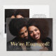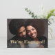 Cette invitation simple et moderne de fiançailles comporte deux de vos photos personnelles préférées, avec une typographie en faux or audacieuse qui dit "nous sommes engagés" sur le devant, et tous les détails supplémentaires sur le dos.