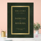 Classique moderne vert émeraude foncé et faux or tendance typographie minimale personnalisée acrylique opaque mariage signe de bienvenue modèle. Convient pour un mariage élégant et élégant.