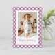 Photo minimaliste violet et blanc plaid Happy Holiday carte avec un motif à damiers violet et blanc. Personnalisez facilement cette carte en vichy de vacances photo avec votre photo et votre nom de famille.