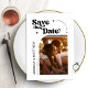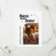 Carte de save the date de mariage moderne avec arche à la mode et typographie rétro. Design élégant et simple en noir et blanc avec une touche funky rétro des années 70. Vous pouvez choisir des cartes imprimées et/ou un modèle numérique à télécharger instantanément.