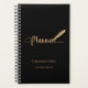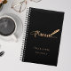 Un arrière - plan noir chic, décoré d'un stylo en plumes. Personnalisez et ajoutez un nom et une année. Texte en or : Planificateur