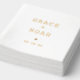 Ajoutez une touche personnalisée élégante aux décorations de réception de mariage avec des serviettes en papier gaufré personnalisées. Tout le texte sur ce modèle est simple à personnaliser pour un mariage, une fête de fiançailles, une douche de mariée, un anniversaire ou toute autre occasion. Les noms peuvent être customisés sous forme d'initiales monogrammées ou d'autres textes de votre choix. Le design en papier métallique blanc et doré présente une disposition minimaliste moderne, une typographie classique de style machine à écrire et un coeur simple et mignon. Ces serviettes de cocktails élégantes apportent une touche customisée unique à une fête spéciale. Félicitations à la mariée et au marié !