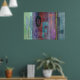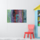 Modern Art Poster with abstract design featuring typography against beautiful multicolored abstract design in muted, grunge style colours of blue, red, green, purple, lavender, and teal. Perfect for urban interiors.
