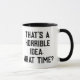 This eye-catching mug features the thought-provoking quote "It's a horrible idea what time" in a striking black font, making a bold statement against the white ceramic background. Whether you're a night owl who thrives after dark or simply someone who questions the tyranny of the clock, this mug is sure to resonate.