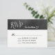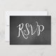 Trendy Typography chalkboard look wedding RSVP response card done to look like a vintage black board, across the top and covering the back. White graphic text reads RSVP. Personalize all the custom text fields to suit your wedding needs. Great for rustic, country chic, shabby weddings.