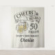 Stylish cheers and beers to 50 years typography design in black, yellow and beige, custom it with your own text, fun and unique, great for any age adult birthday party for men, or beer anniversary party for any occasion.