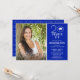 Invite guests to a graduation party with this modern, stylish CLASS OF 2024 (editable for other years) typography design on an editable black background (change to a school colour or a complementary colour for your photo). The front has one photo and the party invitation information and the back side has an editable royal blue background and the year in a light grey colour that can also be changed or deleted. PHOTO TIP: For fastest/best results, choose a photo with the subject in the middle and/or pre-crop it to a similar shape as shown BEFORE uploading. Contact the designer via Zazzle Chat or makeitaboutyoustore@gmail.com if you'd like this design modified, on another product or would like coordinating items.