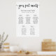 Personalize this modern monochrome typography small wedding seating chart with your own details easily and quickly, simply press the customize it button to further re-arrange and format the style and placement of the text. (c) The Happy Cat Studio