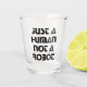 Black and white typography shot glass, that reads "Just a human not a robot" written with a bold, modern, and graphic font.
