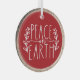 A heartfelt message for the season, this ornament features Peace on Earth in white typography framed by leaf accents, set against a festive red background. Finished with a rustic faux wood-slice edge, it brings quiet charm to modern, farmhouse, or minimalist Christmas décor. A timeless keepsake or thoughtful gift to share the spirit of the holidays.