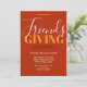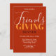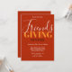 A Friendsgiving Thanksgiving invitation with stylized typography and an orange background. Invite your favourite people to come give thanks and celebrate.