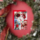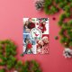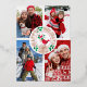 Customize 4 of you holiday family pictures in this easy to use photo collage template. A seasonal typography wreath inbetween them has a little red bird perched on a rose gold foil bow.