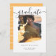 Design your own unique custom Personalized Graduation announcement flat card from Ricaso - designed with a scroll typography graduate text with a modern yellow and white scratched scribbled line pattern to the back - CHANGE THE SAMPLE PHOTO TO YOUR OWN