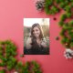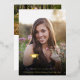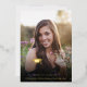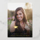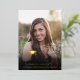 Photo on front and back... Casual graduation invitation announcement with mortarboard graduation cap icon, perfect for the high school or college grad. Modern minimalist typography, casual elegant script "Graduate" writing. Capture those special moments of growth and smiles of joy and youthfulness for all time. Upload a full portrait-mode cover photo of the graduate on front, and a landscape orientation photo als well as pertinent details of the graduation party on back. Automatically shades the perfect areas of the pic.