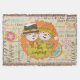Pretty Christmas holiday throw blanket with typography text sayings background, stars, snowflakes, polka dots on orange, and a snowman couple in top hat and winter hat and scarf with a mustard yellow banner that reads Merry Everything!
