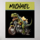 Tyrannosaurus Rex Dinosaur Riding a Motorcycle Poster