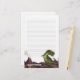 Animal Parade Tyrannosaurus Rex Customizable Lined Stationery for your home or office features our original art of a cute Tyrannosaurus Rex standing in a prehistoric landscape complete with a smoking volcano and painted by our talented children's illustrator Traci Van Wagoner. Perfect for dinosaur lovers of all ages. Collect all our prehistoric stationery items today and share a smile. Roar!