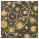 A beautiful spray of gold sun forms, with wheels or gears of celestial mechanics and stardust on deep space black.