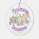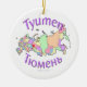 Customizable colourful map ornament of the Russian Federation with Tyumen city location marked with a flag. City name also in Russian - Тюмень. Unique Russia family or adoption or Christmas gift for families with children from Tyumen. Designed by Hendrika of www.RedThreadMaps.com