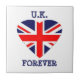 Patriotic and proud of the U.K.? Then this design is for you, featuring the Union Jack enclosed in a heart, the text reads "U.K. Forever". Customize this design and make into a framed tile, or gift box.