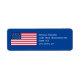 Patriotic. USA American flag is the only design. Just personalize it by adding your information or wording. If the area of the complete name and address or wording is short, text size can be enlarged if it fits the space allowed, or reduce size if needed. Shown on a blue background or customize to change colour to white