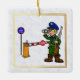 This ornament features my cartoon graphic of a U.S. Border Patrol Agent at the border gate with a pair of binoculars. On the back you can personalize this with a Name and Year. Or put whatever you want on the back. Makes a great gift for anyone you know who works as a Border Patrol Agent. Designed by Sheila Cicchi, Brownielocks.com. All Rights Reserved. NOTE: U.S. Border Patrol Day is on May 28 annually. Due to the design style, you can only buy this on SQUARE ornaments.