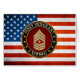 Introducing project “Military Insignia 3D”, featuring top quality military heraldry designs. Here you will find customizable apparel, accessories, custom postage and gifts decorated with rank insignia of a U.S. Marine First Sergeant (USMC 1stSgt). In the United States Marine Corps, First Sergeant (abbreviated 1stSgt) is one level above Gunnery Sergeant and one level below Sergeant Major and Master Gunnery Sergeant. It is equal in grade to Master Sergeant, although the two ranks have different responsibilities. A first sergeant has a command responsibility as a senior enlisted advisor, while master sergeants have technical responsibilities. Unlike the first sergeant and master sergeant programs in other branches, no lateral movement is possible between the two ranks in the Marine Corps; rather a gunnery sergeant elects a preference on fitness reports, which are considered before promotion. A first sergeant is then eligible to be promoted to a sergeant major, while a master sergeant would be on the promotional track for master gunnery sergeant. The grade of first sergeant initially appeared in the Marine Corps in 1833, when Congress created the grade of Orderly Sergeant; 30 billets for the rank were established. In 1872, the Corps replaced the title of orderly sergeant with the rank of first sergeant. The rank of first sergeant was another casualty of the rank realignment of 1947. It was reestablished in 1955.