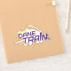 The UAlbany Dane Train logo features bold, angular typography with the words "Dane Train" in large, purple capital letters. Above it, "UAlbany" is written in a smaller, golden font. The design incorporates the silhouette of a train, with smoke billowing from the smokestack. The train's wheels are represented in gold, giving the appearance of movement, and golden streaks on the left emphasize speed and momentum. The logo exudes a dynamic and energetic vibe, combining elements of strength and motion, reflecting a sports or team spirit.