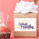 The UAlbany Dane Train logo features bold, angular typography with the words "Dane Train" in large, purple capital letters. Above it, "UAlbany" is written in a smaller, golden font. The design incorporates the silhouette of a train, with smoke billowing from the smokestack. The train's wheels are represented in gold, giving the appearance of movement, and golden streaks on the left emphasize speed and momentum. The logo exudes a dynamic and energetic vibe, combining elements of strength and motion, reflecting a sports or team spirit.