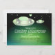 Une invitation de baby shower montrant un ravitailleur et un UFO de bébé. Les deux flottent dans l'espace. La couleur de lueur d'arrière - plan est verte. Le texte est tout personnalisable. Le dos de l'invitation a un motif de soucoupe volante.