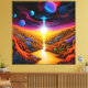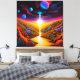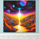 Enter a fantasy world where UFO's hover above colorful landscapes surrounded by beautiful and colorful  planets.