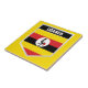 The national flag of Uganda is infused into a shield shape along with the country name.