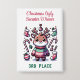 Get ready to enjoy some holiday chuckles this season with our Ugly Sweater Christmas Winner, 3rd Place Pin! This festive and fun design features a charming reindeer dressed in its very own ugly Christmas sweater, surrounded by ornaments, stockings, and candy canes for that perfect holiday vibe. The phrase “Christmas Ugly Sweater Winner” “3rd Place” is editable if you like. With customizable text, you can easily add your own text and make it uniquely yours. Whether you're throwing a jolly get-together with friends or a work holiday bash, this Ugly Sweater Winner Pin sets the tone for a merry celebration filled with tacky sweaters and festive cheer! Edit text from the product page, or to change font style or colour, use the design tool.
