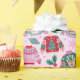 This festive design features a pattern of ugly Christmas sweaters featuring reindeer, Santa, Christmas trees, snowflakes, snowmen, holly and berries and more on a pink background. See the whole matching collection.