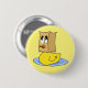Poor little ugly duckling. Button features a yellow background with a bright yellow duck swimming on blue water and wearing a brown paper bag on his head.