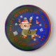 Reward the winner of your Ugly Christmas Sweater Party with this CUTE BUTTON featuring a whimsical woodland Reindeer on a green blue background with flying snowflakes around! It was hand-painted to fit a green background.