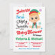 Ugly Sweater Baby Shower Invitation. Features a baby boy dressed in his Christmas sweater, diaper and elf hat. Colourful fonts and snowflakes.