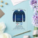 Funny Ugly sweater Christmas party invitation with a blue sweater that has a deer and Santa Claus pattern. Nothing is better than a fun gift exchange or, ugly sweater party. Look through the collection page for invitations and cards from all stores. See all my stores at https://bit.ly/SandyspiderStores
