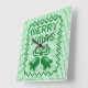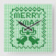 Green knitting pattern in ugly sweater style with jingle bells and Merry Xmas text