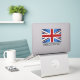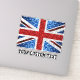 Custom UK flag sparkles kiss-cut vinyl sticker with text. Sparkly UK United Kingdom flag in red, white and blue faux sparkles glitters. We use photo of sparkles and not actual glitters.