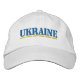 UKRAINE Blue and Yellow Stencil Style Font White Embroidered Hat