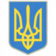 Patriotic Ukrainian coat of arms. Coat of Arms of Ukraine. Lesser Coat of Arms of Ukraine, the so called Tryzub. A stylised trident symbol in gold on a background shield of blue.