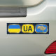 Bumper sticker displaying an attractive combination of the Ukrainian flag, map and 2 letter country code.