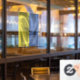 Window cling with the flag of Ukraine in wavy fabric style design. This design features the Ukrainian flag colours and design with a beautiful waving material textured effect. This flag design is a great way to show you are proud to be from Ukraine.