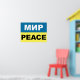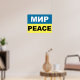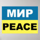 PEACE text in Ukrainian (Russian) and English. Black and white text on Ukraine Flag colours.